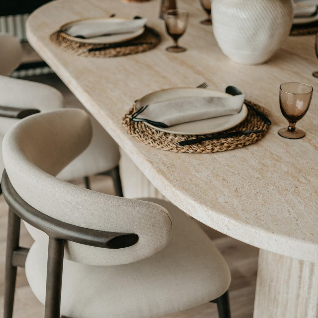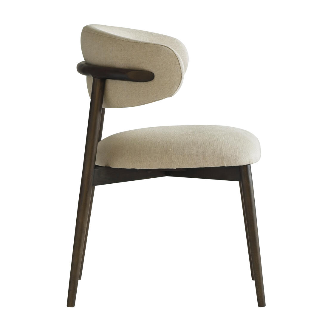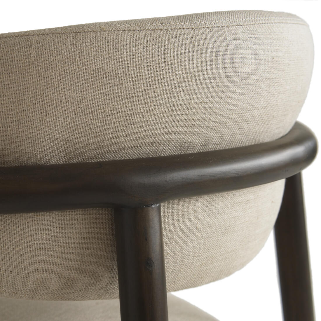 This simple, but elegant dining chair offers a refined take on Scandinavian design. Arlo is formed of clean lines in a dark wooden frame, with a back and seat in neutral linen fabric. Soft curves in the frame are mirrored by the upturned padded seat and the supportive curved back.