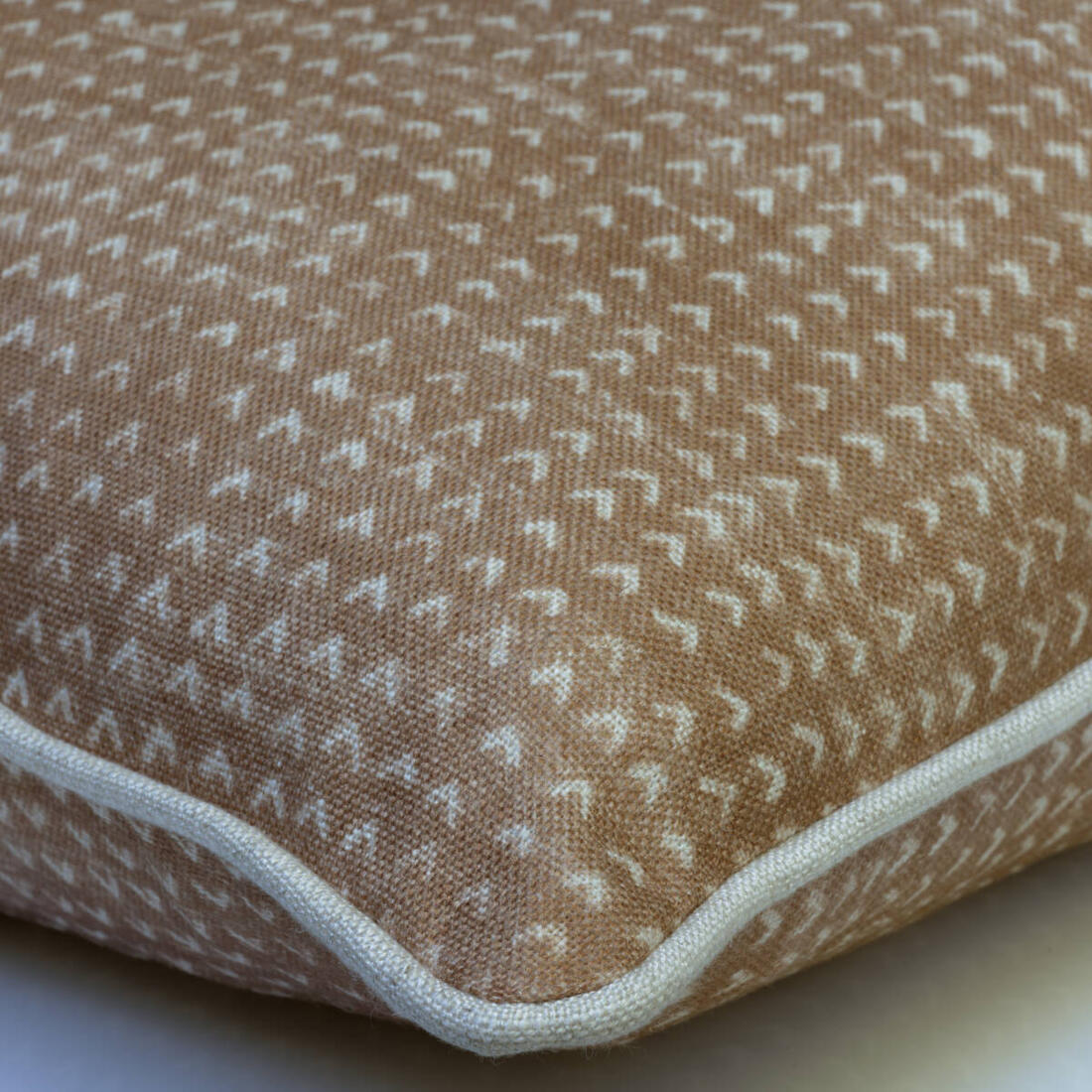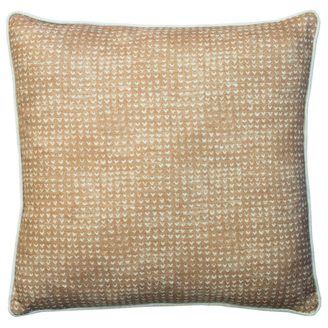 A soft and plump cushion made from Finch Autumn fabric, The small-scale print conjures up images of the delicate markings of birds' feet and was inspired by an original Batik printed document. Piped in smart plain Trek Linen for a simple and elegant finish, this feather-filled cushion is perfect for mixing with the other colours.